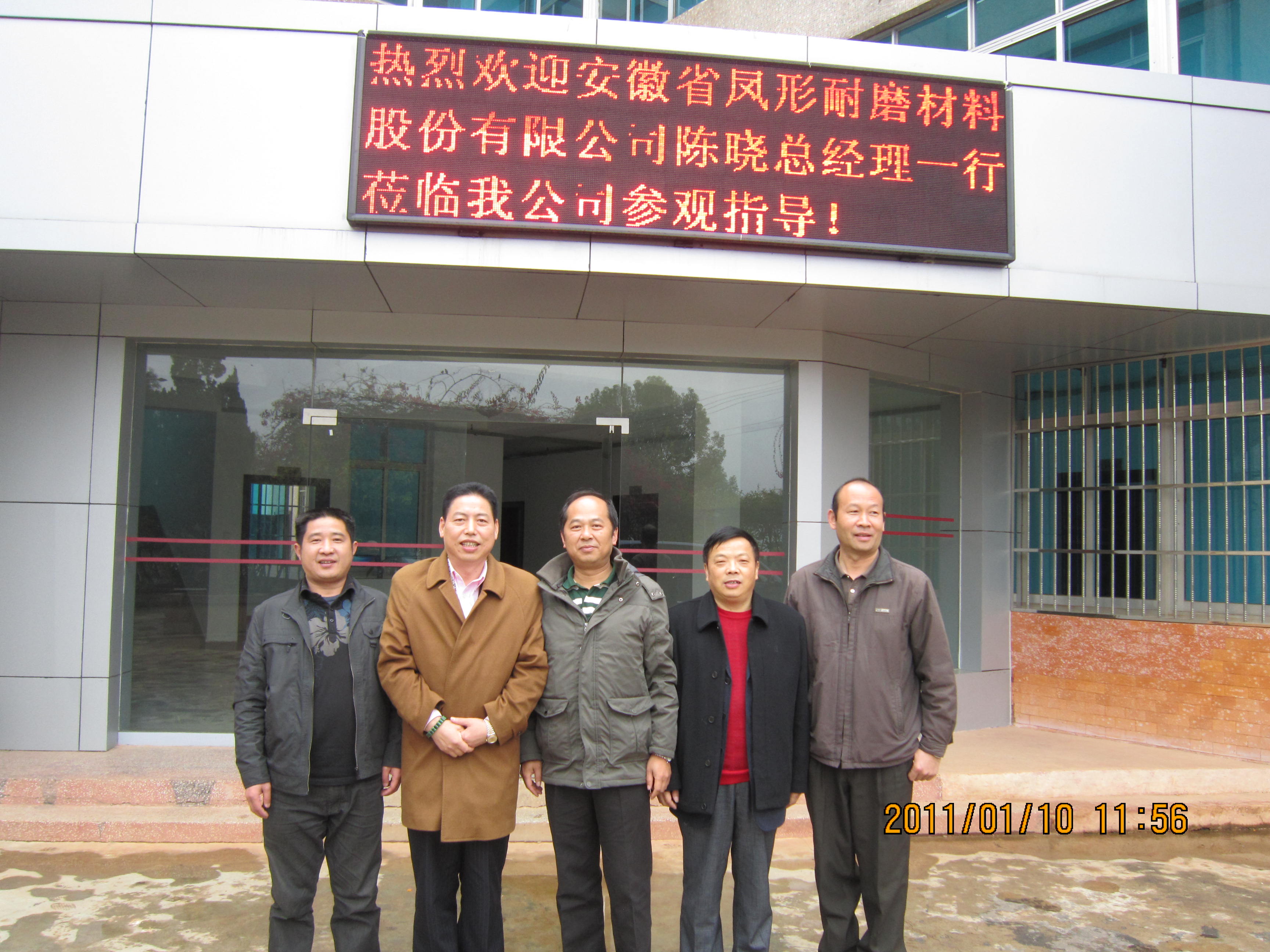 作者:管理員時(shí)間:2011-01-112011年1月10日,安徽省鳳形耐磨材料股份有限公司陳曉總經(jīng)理一行蒞臨我公司參考指導(dǎo),雙方就耐磨材料的生產(chǎn)、銷(xiāo)售進(jìn)行了深入的經(jīng)驗(yàn)交流。編輯:范太寶 校對(duì):張 文...